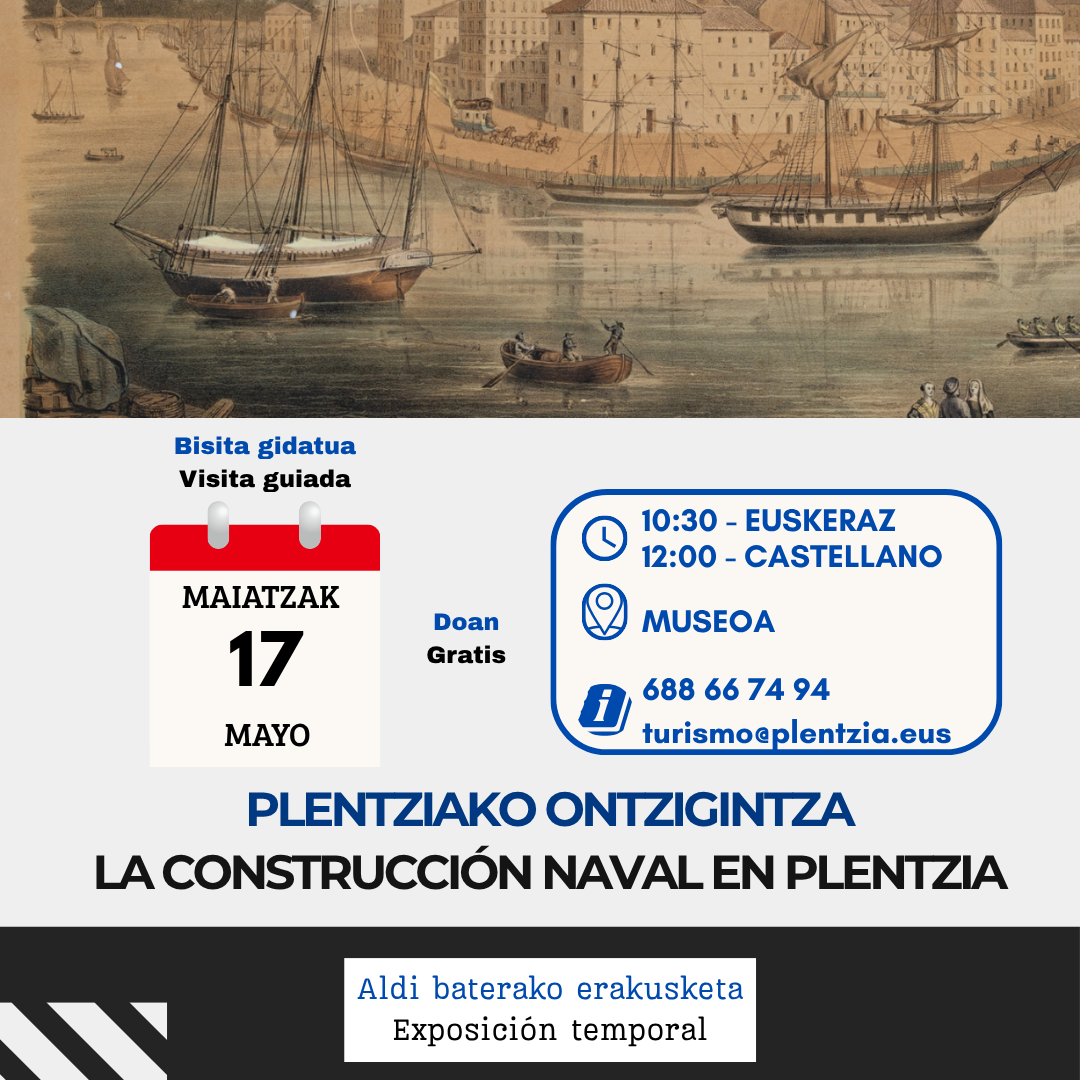 La construcción naval en Plentzia es la exposición temporal que acoge el Museo Plasentia de Butrón, que ofrecerá una visita guiada el próximo 17 de mayo a las 12:00 en castellano.